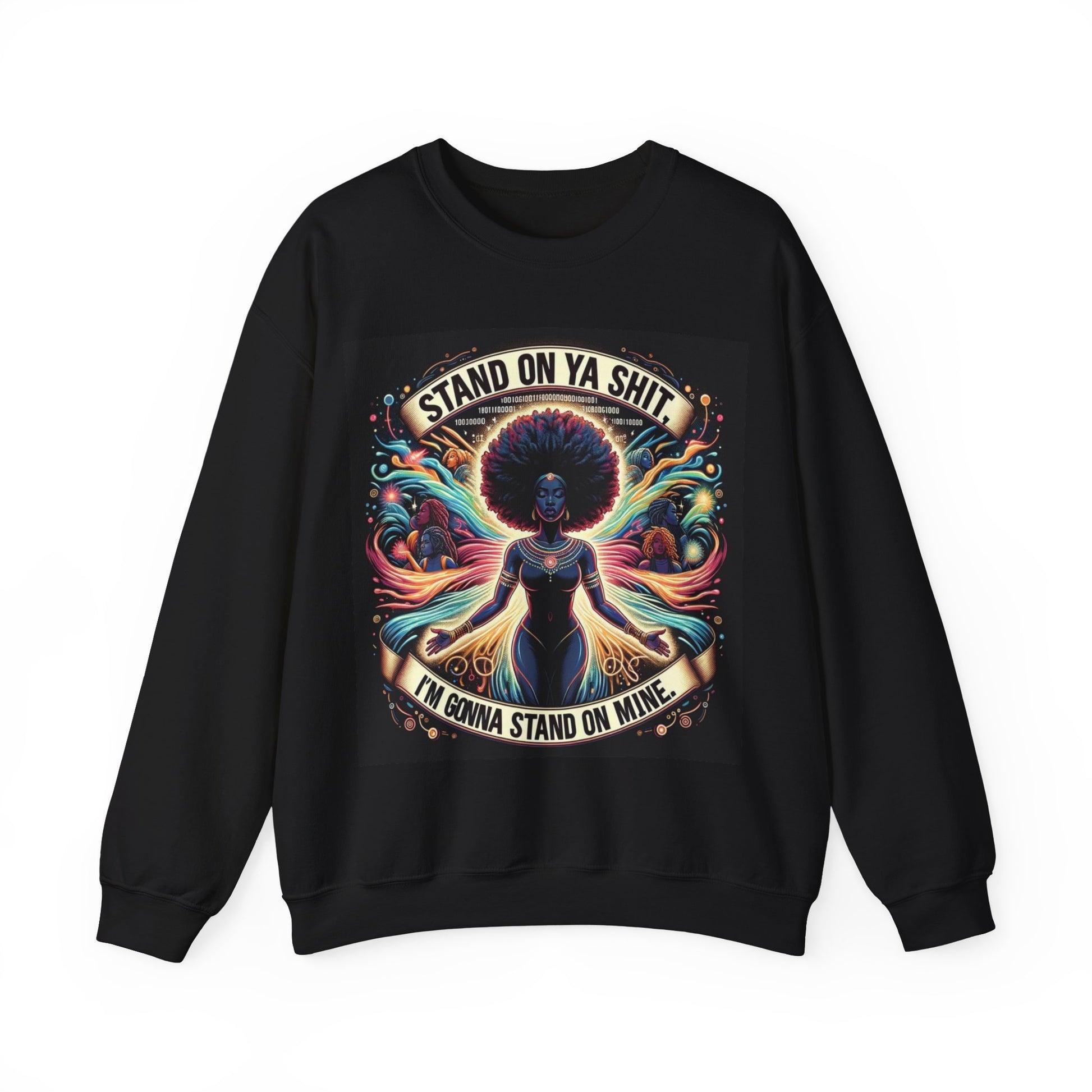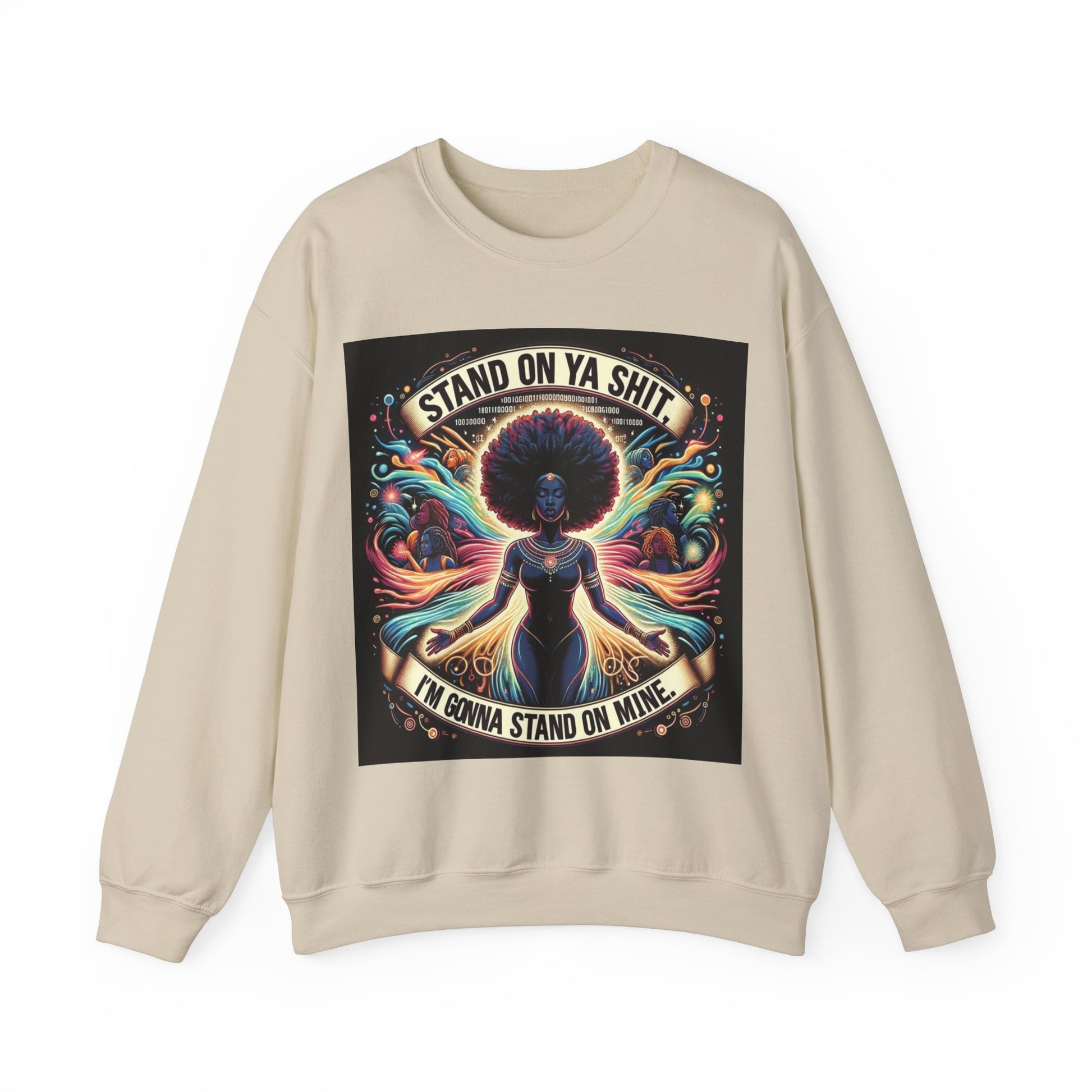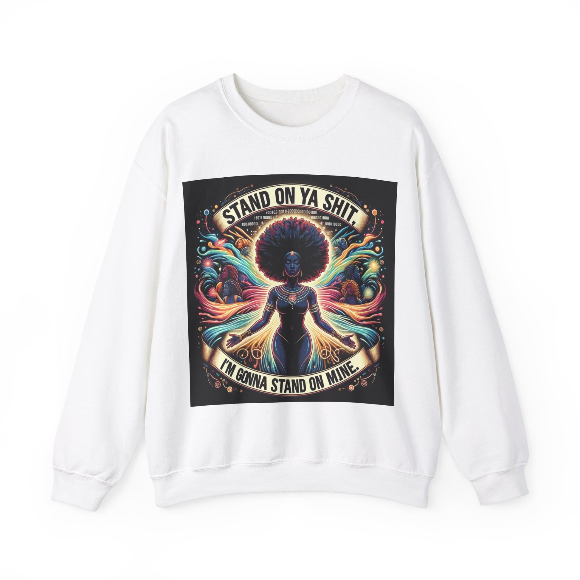 Discover the perfect blend of comfort and empowerment with our 'Stand on Your Shit, I'm Gonna Stand on Mine' Unisex Heavy Blend™ Crewneck Sweatshirt. This sweatshirt is more than just a cozy garment; it's a declaration of your spiritual strength and resolve.