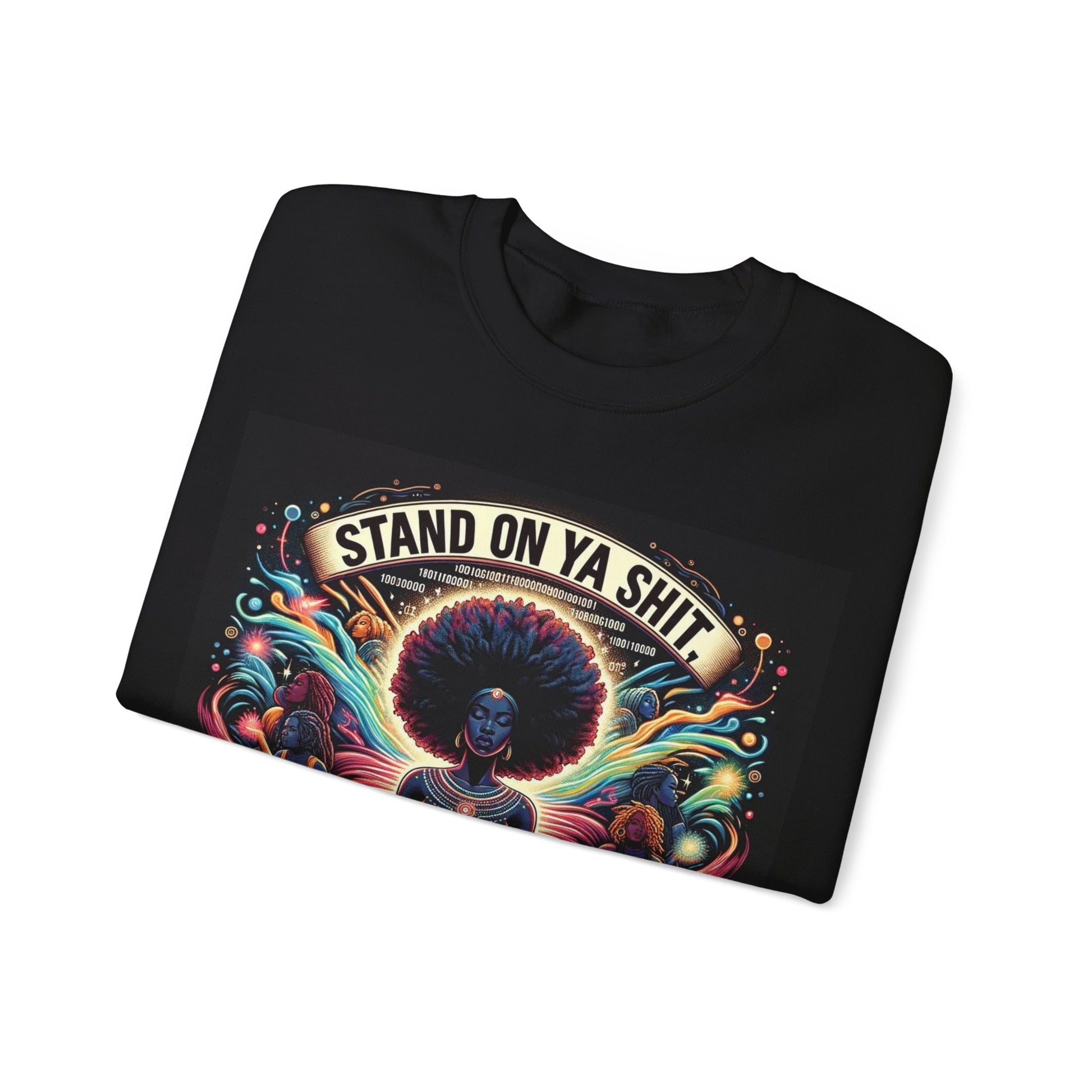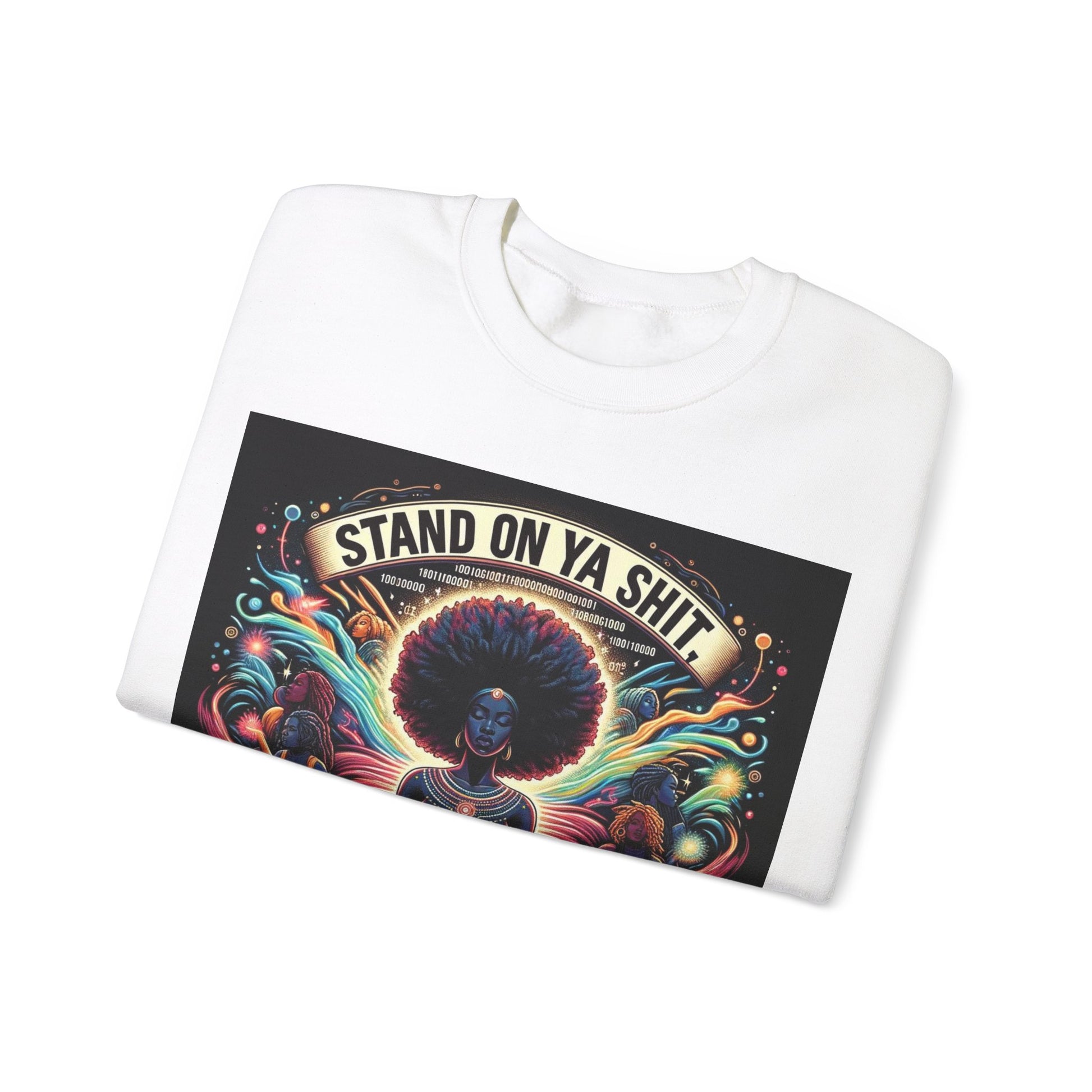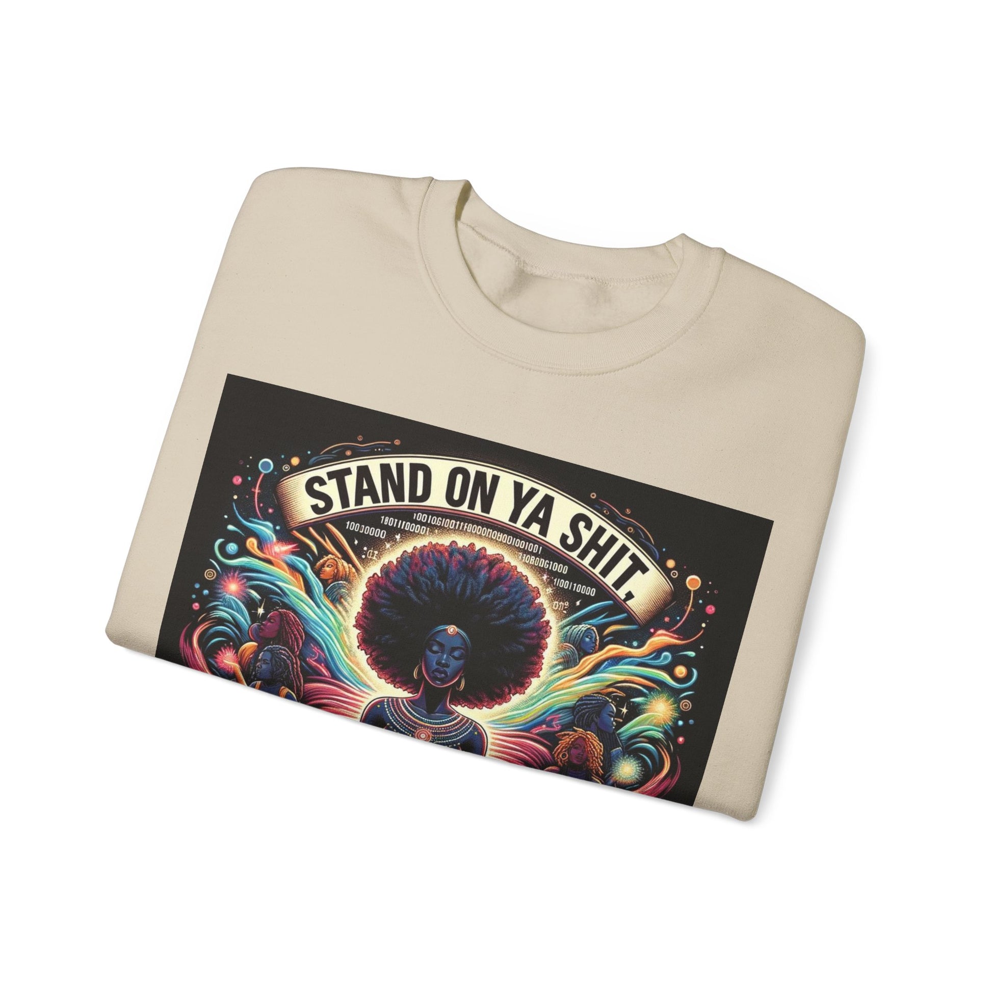 Discover the perfect blend of comfort and empowerment with our 'Stand on Your Shit, I'm Gonna Stand on Mine' Unisex Heavy Blend™ Crewneck Sweatshirt. This sweatshirt is more than just a cozy garment; it's a declaration of your spiritual strength and resolve.